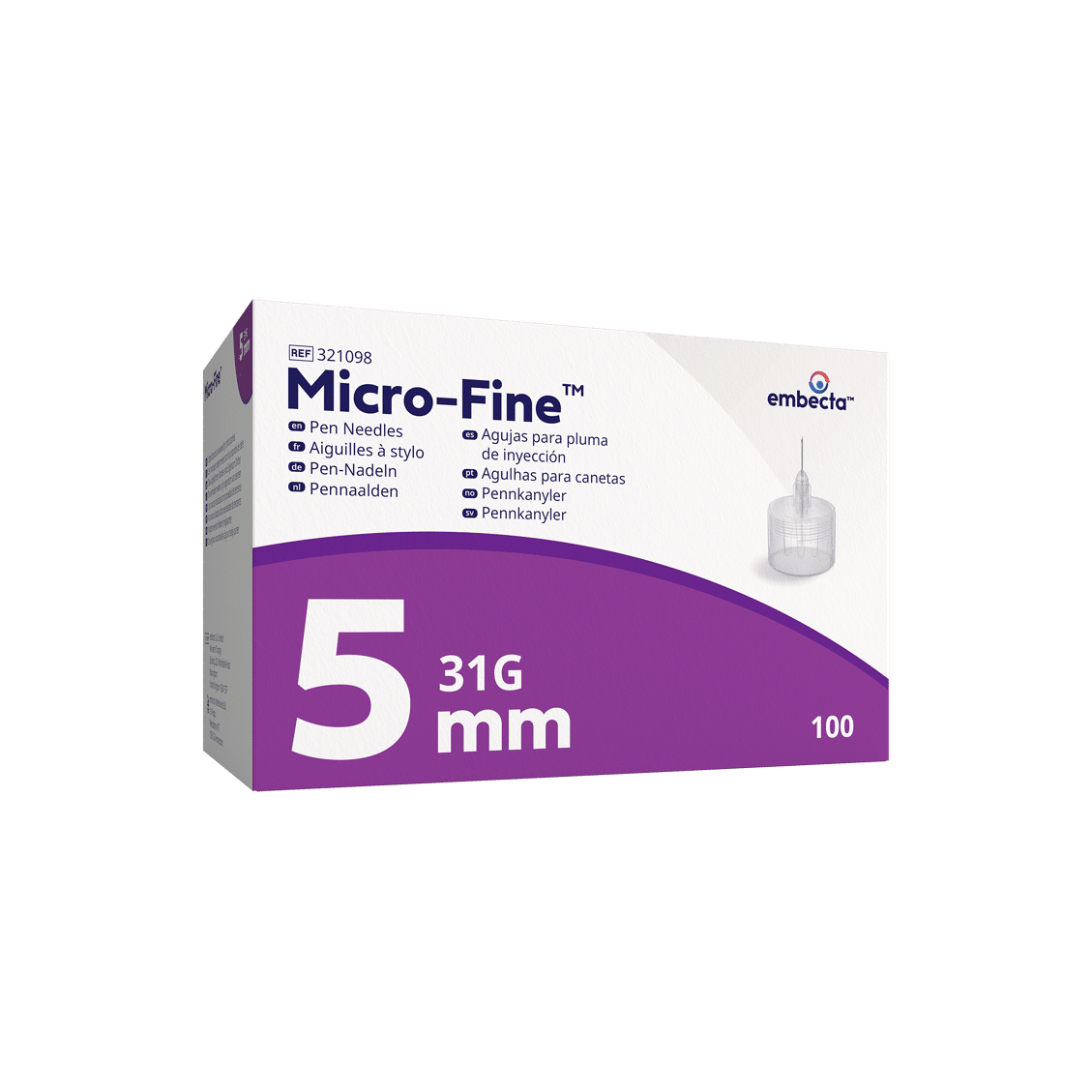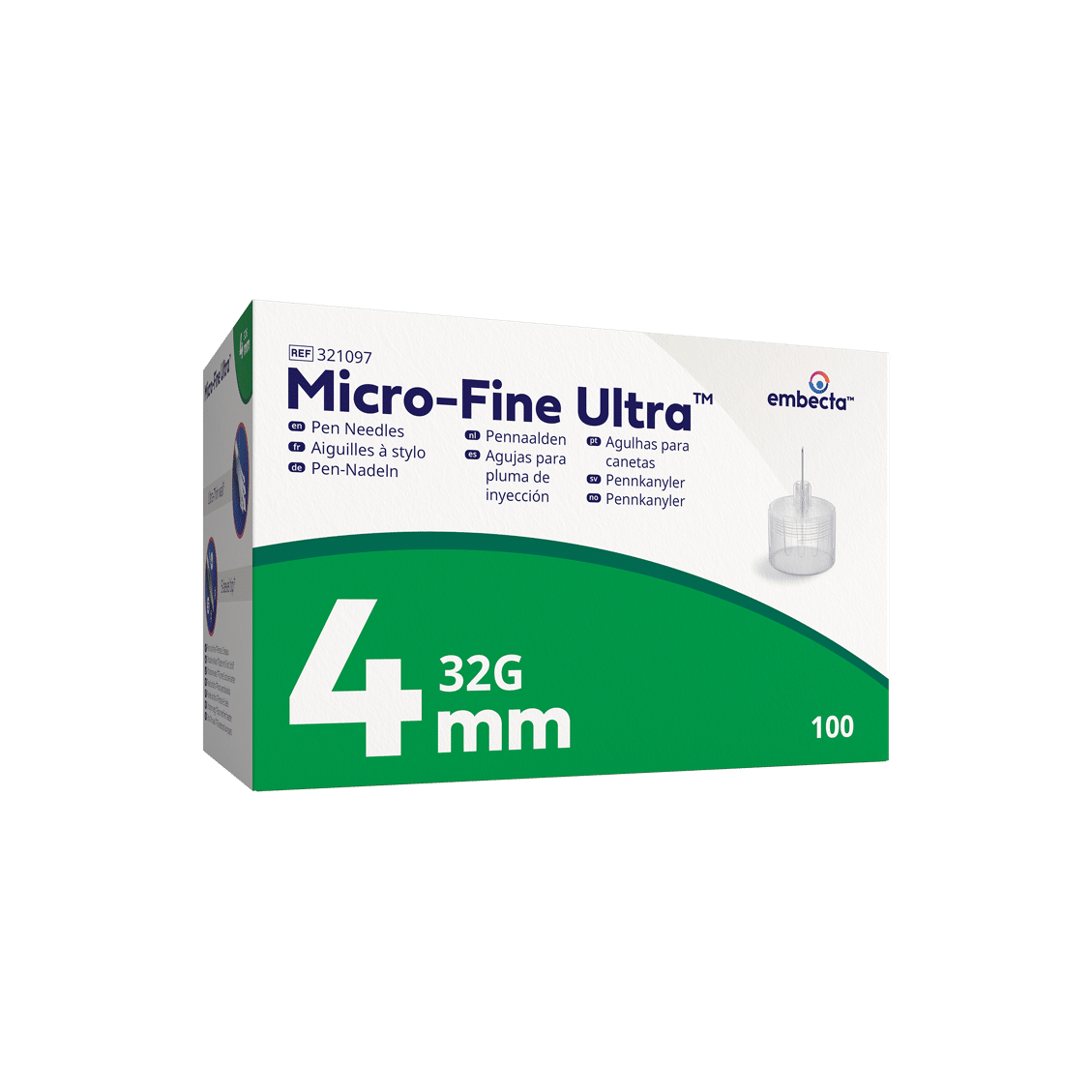 Micro-Fine pennaald, te gebruiken voor toediening van insuline met behulp van een insulinepen.